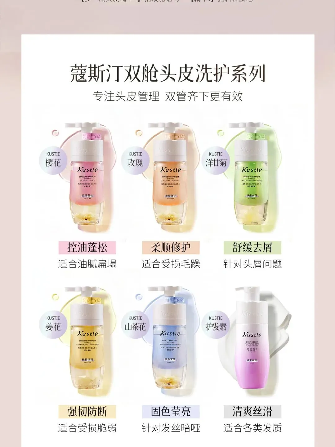 【产品】双舱洗发水(樱花/玫瑰/洋甘菊/姜花)