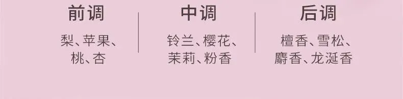 奶甜白桃香——功效:香甜嫩肤;成分: 桃果提取物、矢车菊花提取物