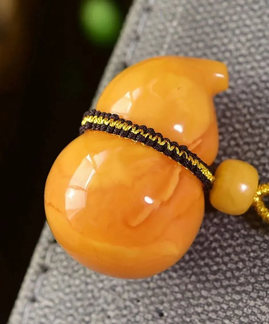 0227-1-1066、新品特惠🉐️7折一套!🔥🔥天然俄料蜜蜡葫芦吊坠,圆润饱满,蜜满蜡实,满蜜枣红色妖花老蜡,坠重约7.8克,尺寸约33x21毫米,总重18.3克,配蜜蜡编织链,支持检测!这样蜡质和颜色的货已经不多啦,遇见请珍惜!