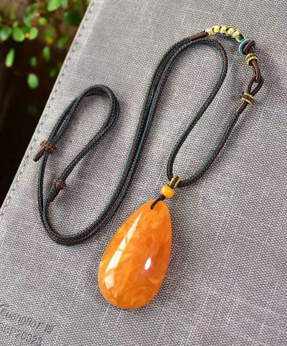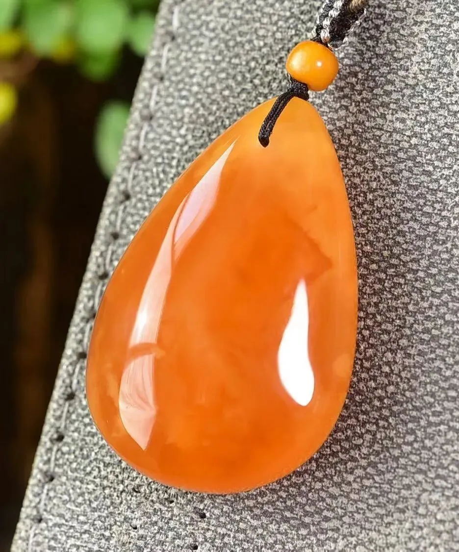 0227-18-889、新货到🉐️6.5折一条!🔥🔥🔥天然老花蜡水滴吊坠,圆润饱满,蜜满蜡实,满蜜鸡油红老蜡,吊坠重9.4克,尺寸约41x27x14毫米,总重约10.7克,送手工链,支持检测