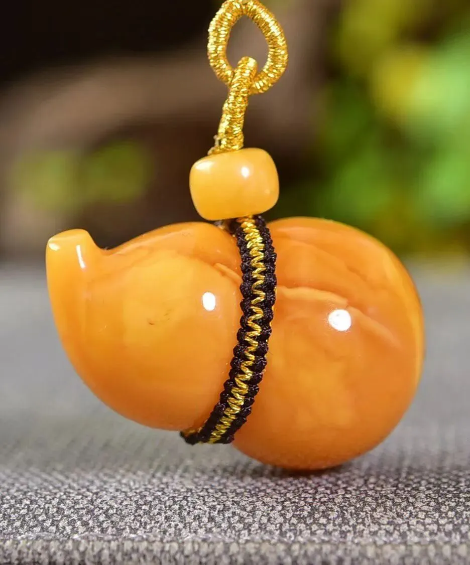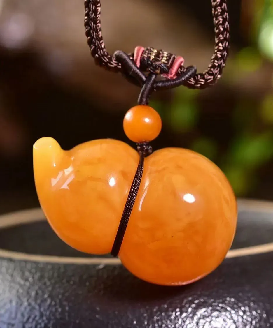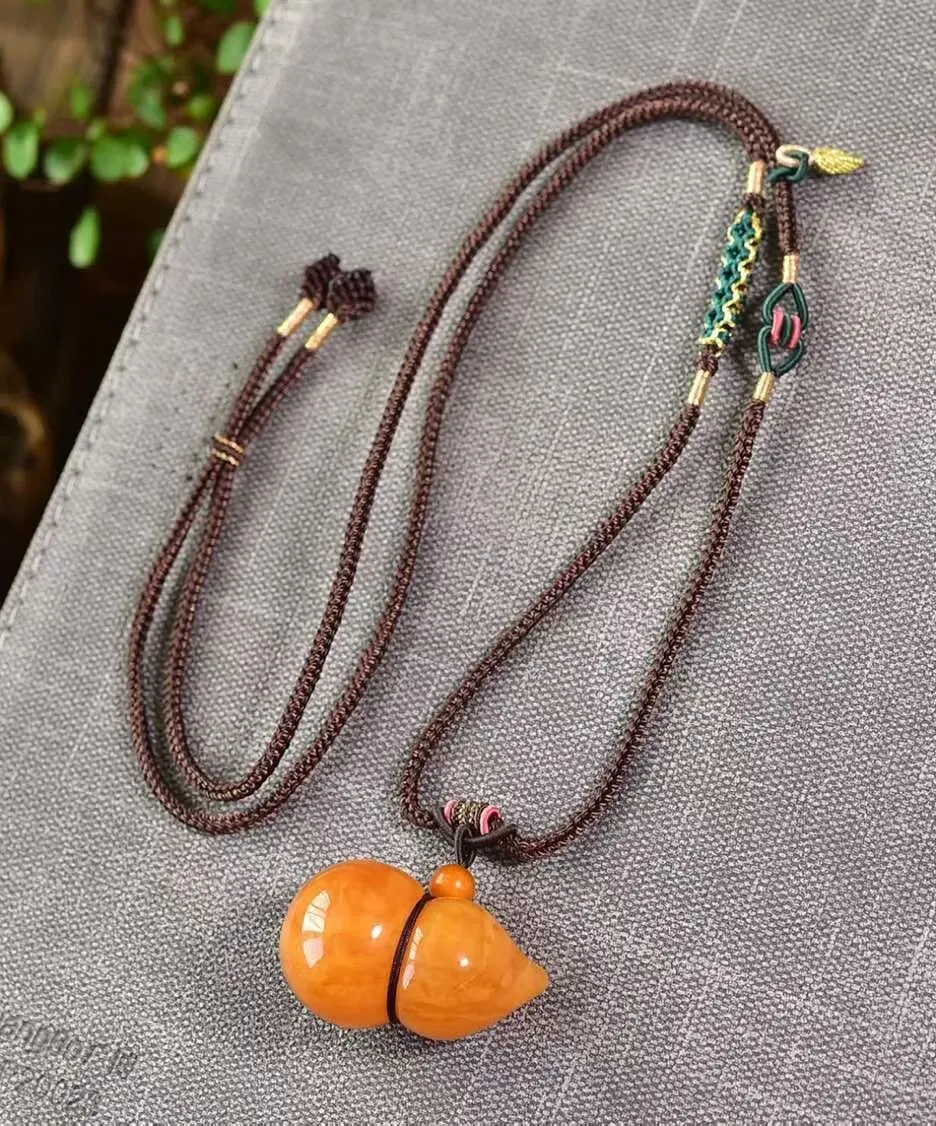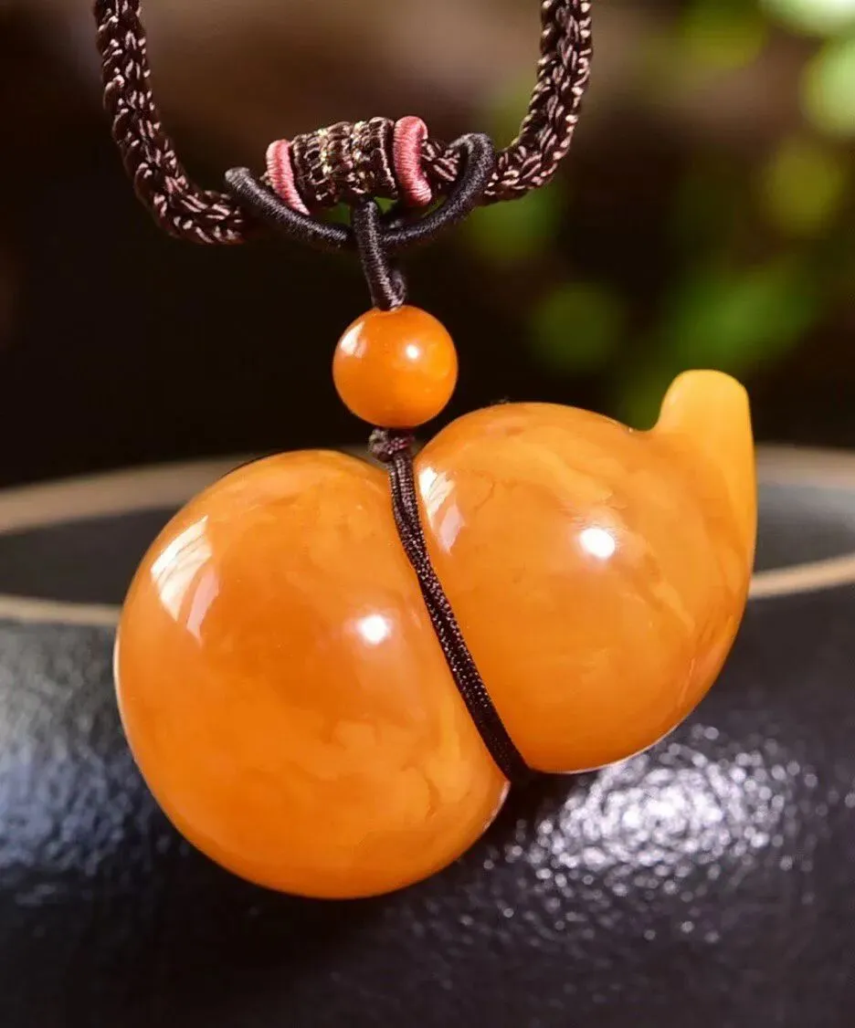 0227-1-1066、新品特惠🉐️7折一套!🔥🔥天然俄料蜜蜡葫芦吊坠,圆润饱满,蜜满蜡实,满蜜枣红色妖花老蜡,坠重约7.8克,尺寸约33x21毫米,总重18.3克,配蜜蜡编织链,支持检测!这样蜡质和颜色的货已经不多啦,遇见请珍惜!