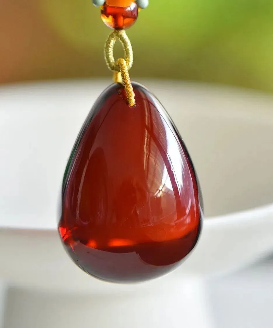 0227-8-1288、捡漏价🉐️6.5折一套!🔥🔥天然血珀水滴吊坠,颜色红润,圆润饱满,意境美,无杂裂,吊坠重约14.5克,尺寸约41x30x21毫米,总重约25.9克,送原创血珀链,支持检测!!
