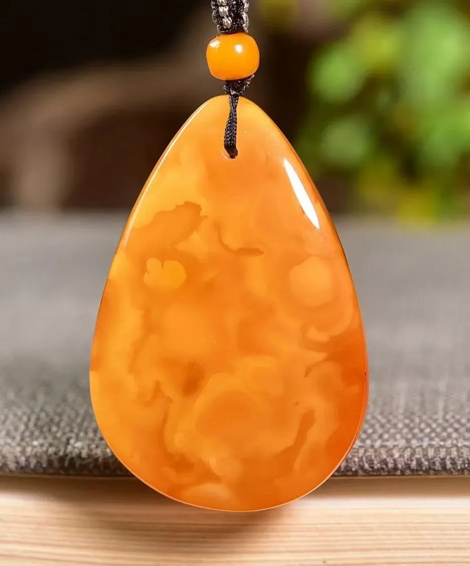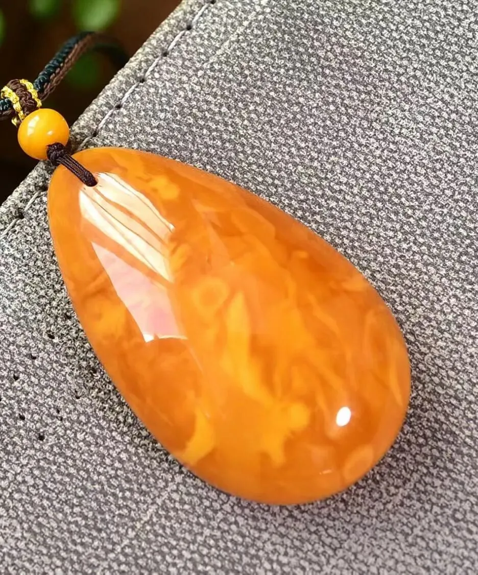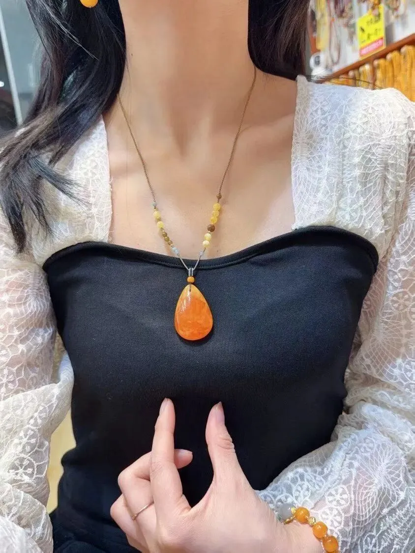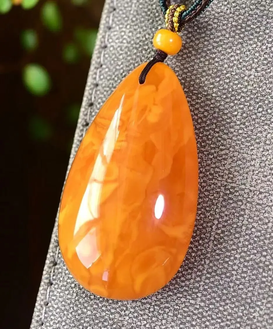 0227-18-889、新货到🉐️6.5折一条!🔥🔥🔥天然老花蜡水滴吊坠,圆润饱满,蜜满蜡实,满蜜鸡油红老蜡,吊坠重9.4克,尺寸约41x27x14毫米,总重约10.7克,送手工链,支持检测