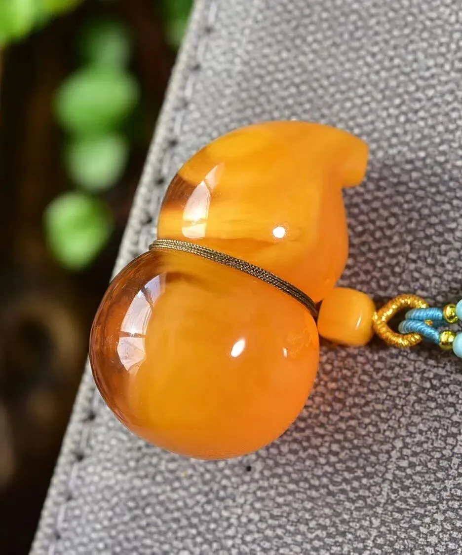 0227-12-1089、新货到🉐️5折一条!🔥🔥🔥天然老花蜡葫芦吊坠,圆润饱满,蜜满蜡实,满蜜鸡油红老蜡,吊坠重10克,尺寸约37x23x23毫米,总重约13克,送手工链,支持检测