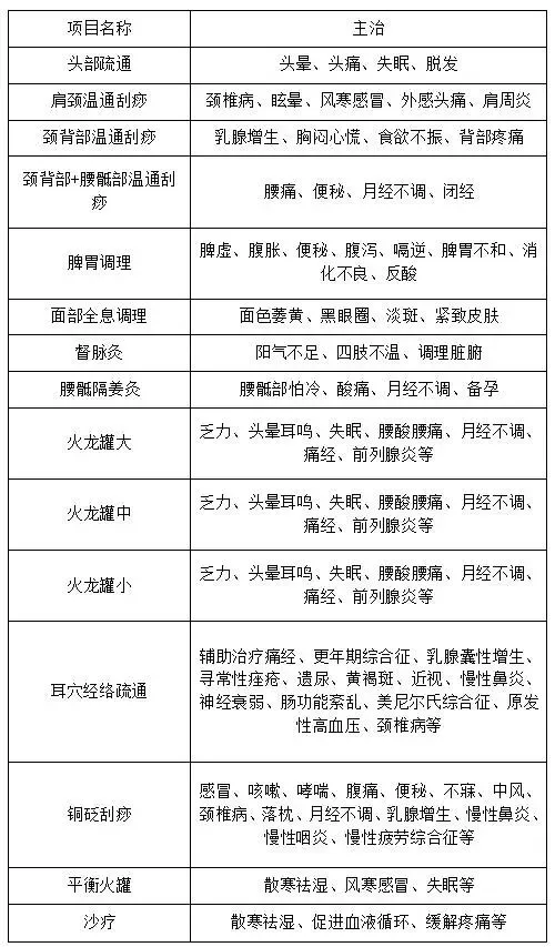调理项目一览表