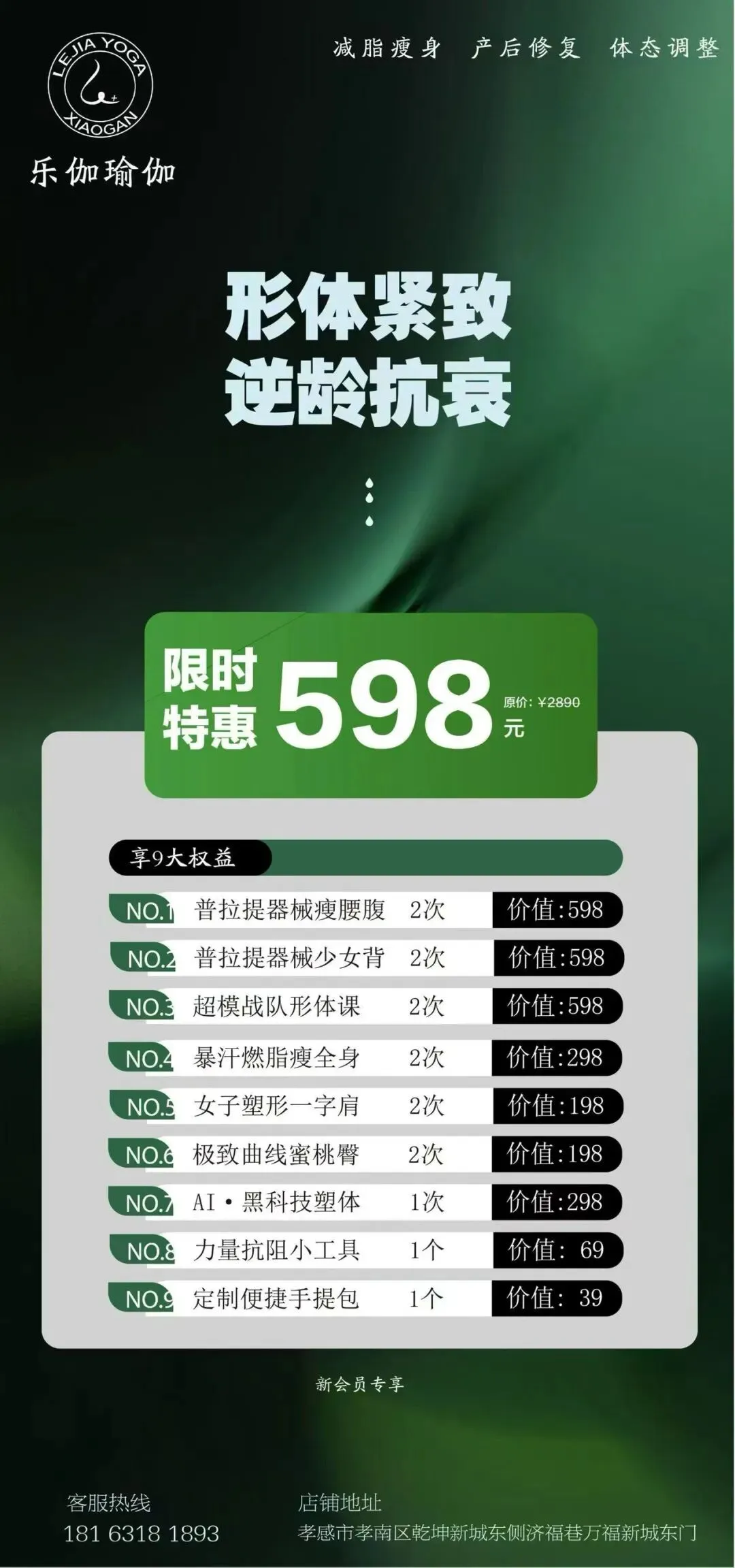 体态调整气质美学、女性调理产后修复、减脂瘦身,增肌塑形、力量训练