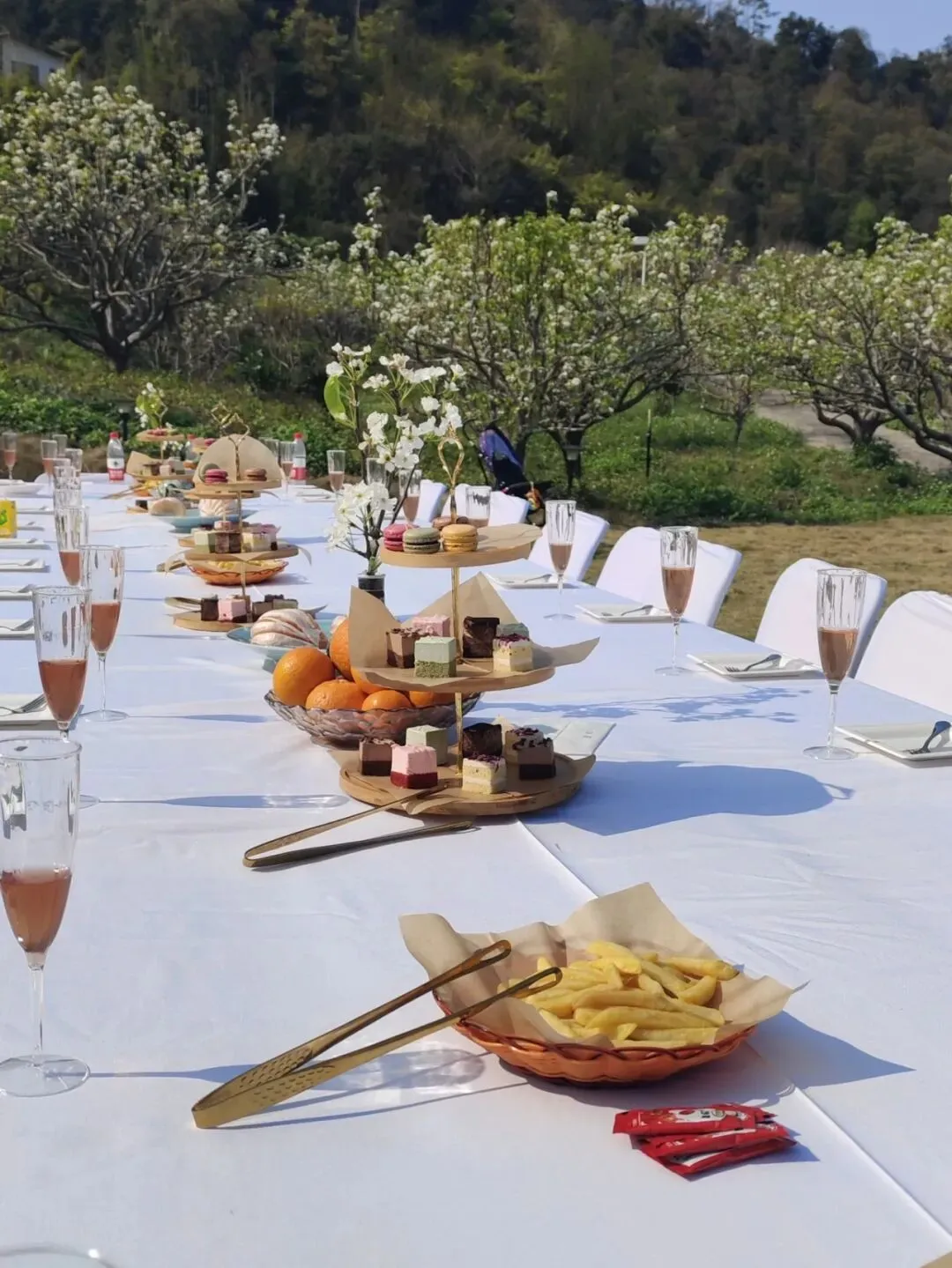 • 梨花下午茶:梨树下野餐茶席,精致糕点、花茶、鸡尾酒,尽享惬意。