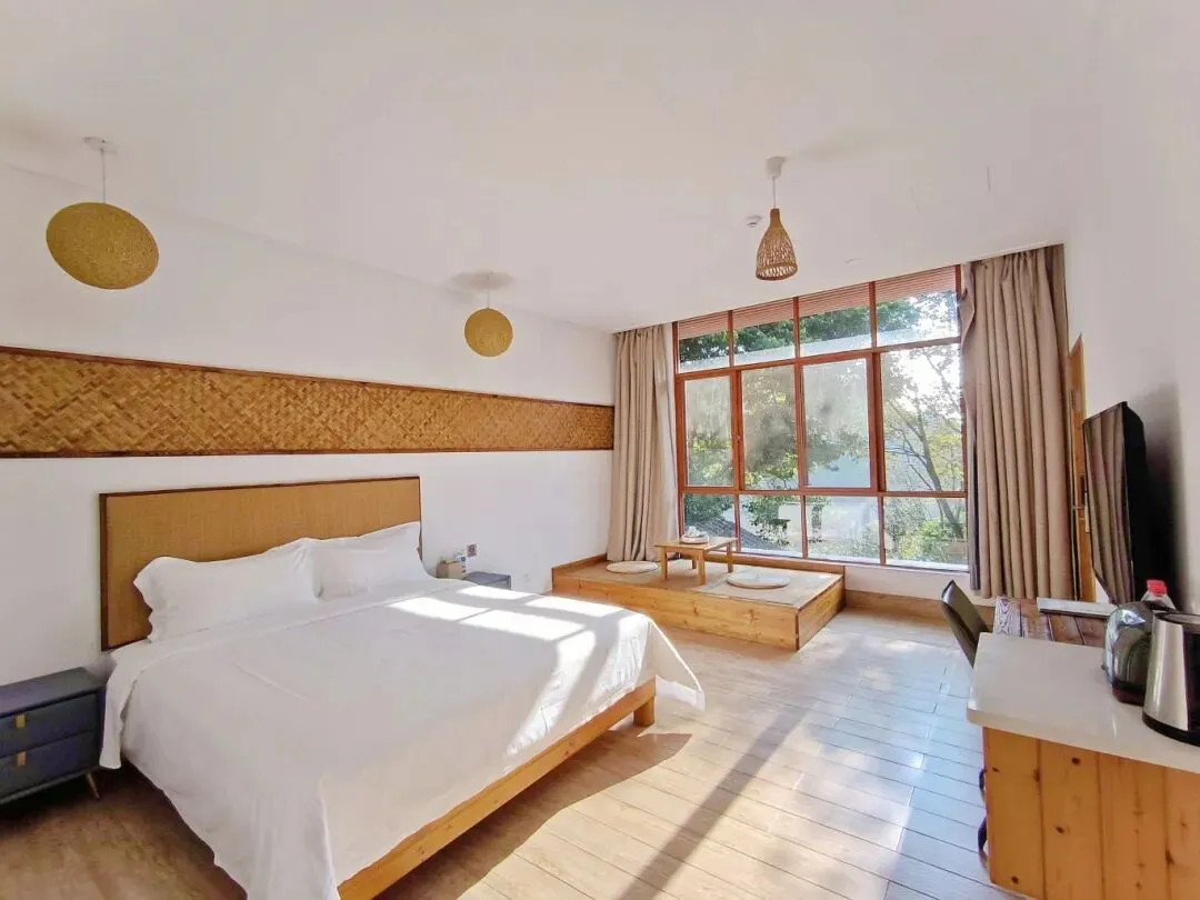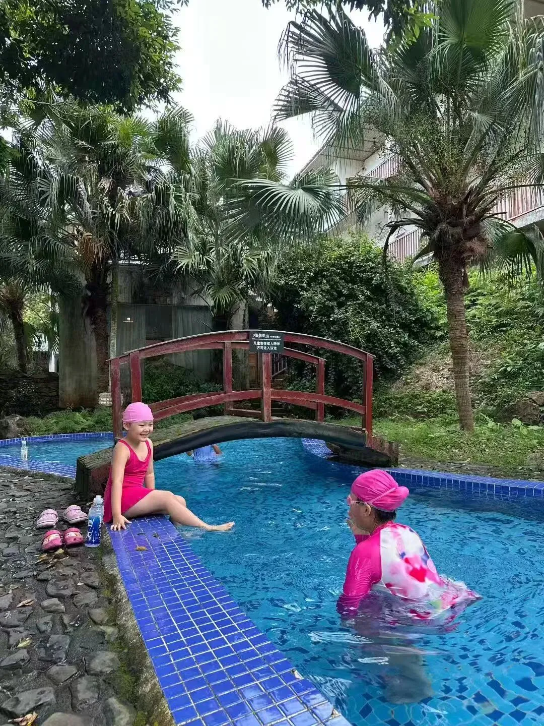 梨花屋舍设有成人游泳池和儿童戏水区,引用天然山泉水,水质清凉洁净。成人池可体验泳池下午茶,适合放松身心;儿童戏水区为浅水设计,保障安全的同时增添嬉水乐趣。在群山环绕间享受畅游时光。
