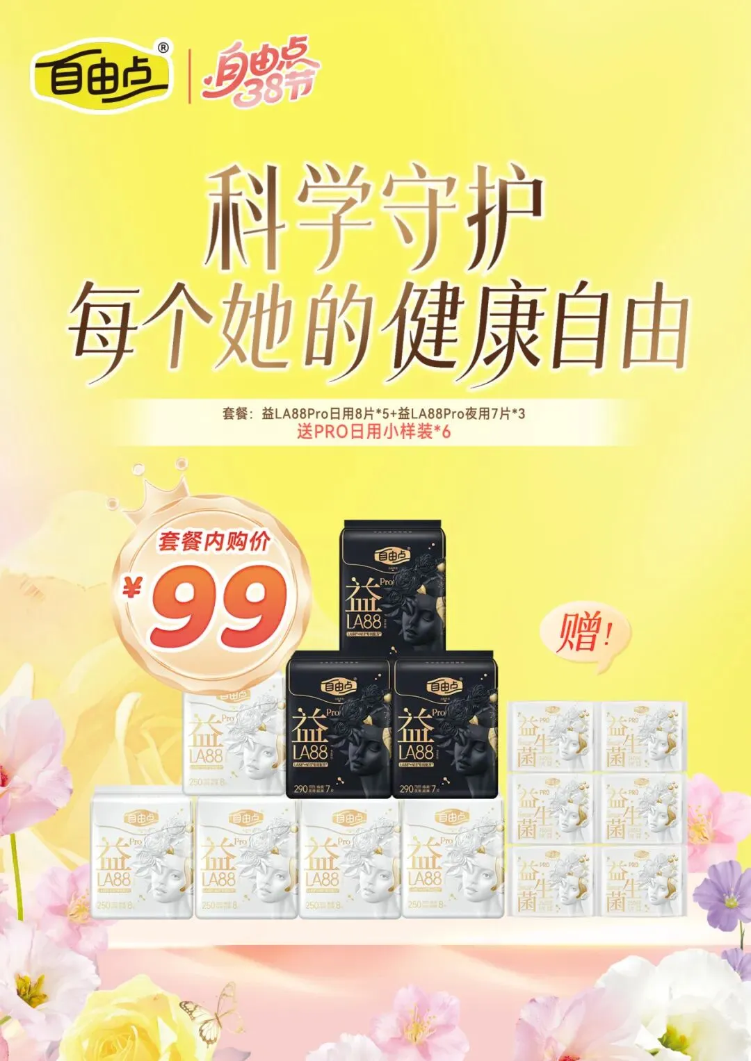 套餐:益LA88Pro日用8片*5+益LA88Pro夜用7片*3+送PRO日用小样装*6