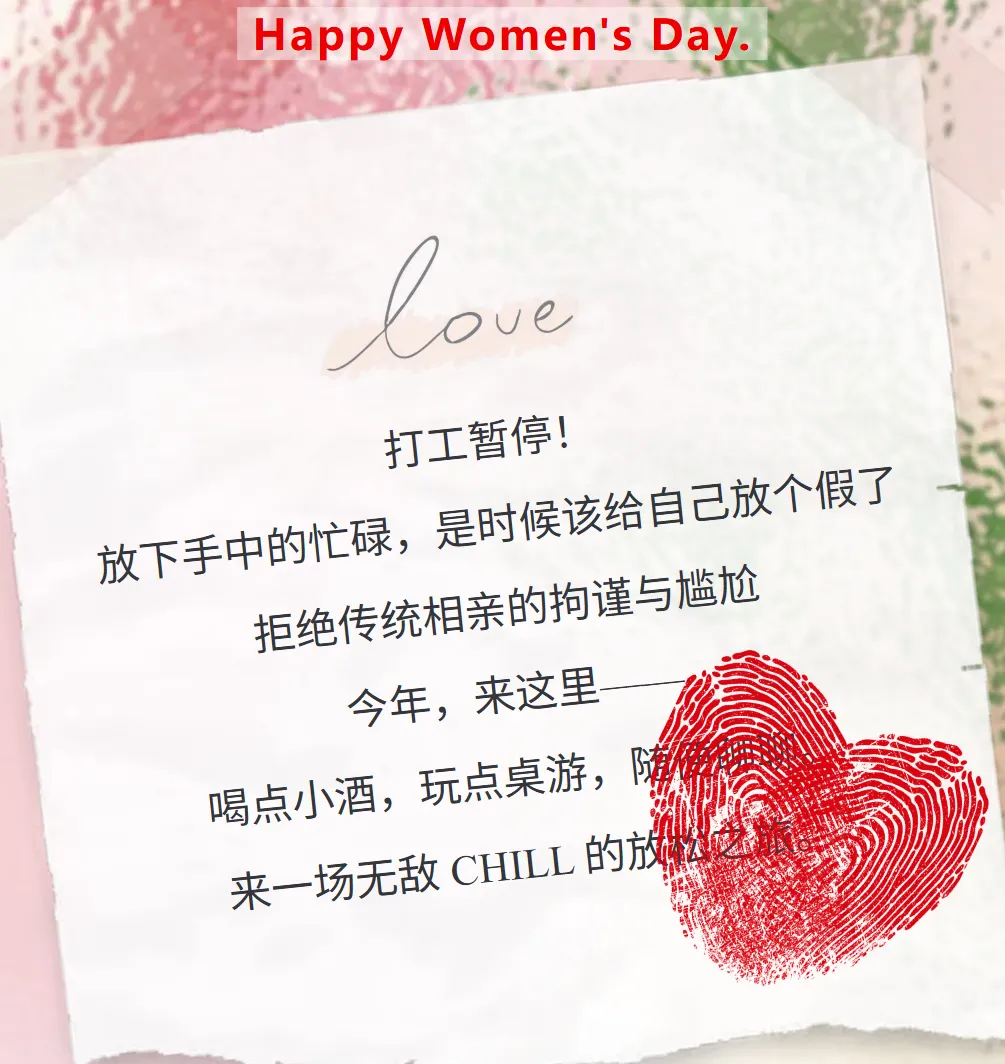3.8【女神节专属微醺派对】热闹过节桌游聊天遇见新年的缘分!