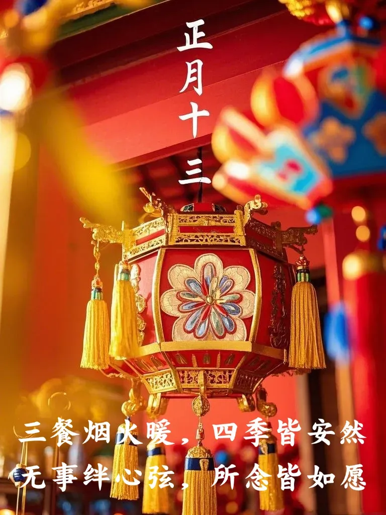 正月十三许心愿,愿快乐把您伴,愿好运把您恋,愿幸福把您念,愿健康围您绕,愿平安对您笑。马年愿你我健康,亲人平安,珍惜人间情,感恩天地爱。生活顺利心儿甜蜜蜜!早安,朋友,祝您快快乐乐,健健康康,团团圆圆,红红火火!