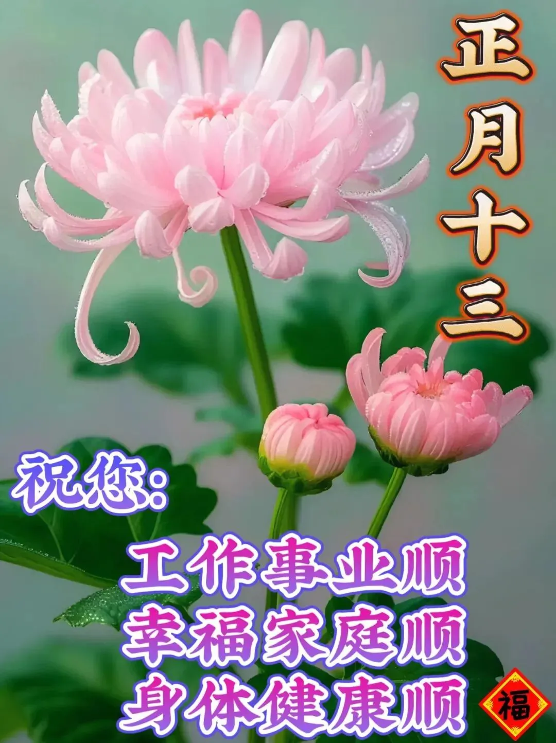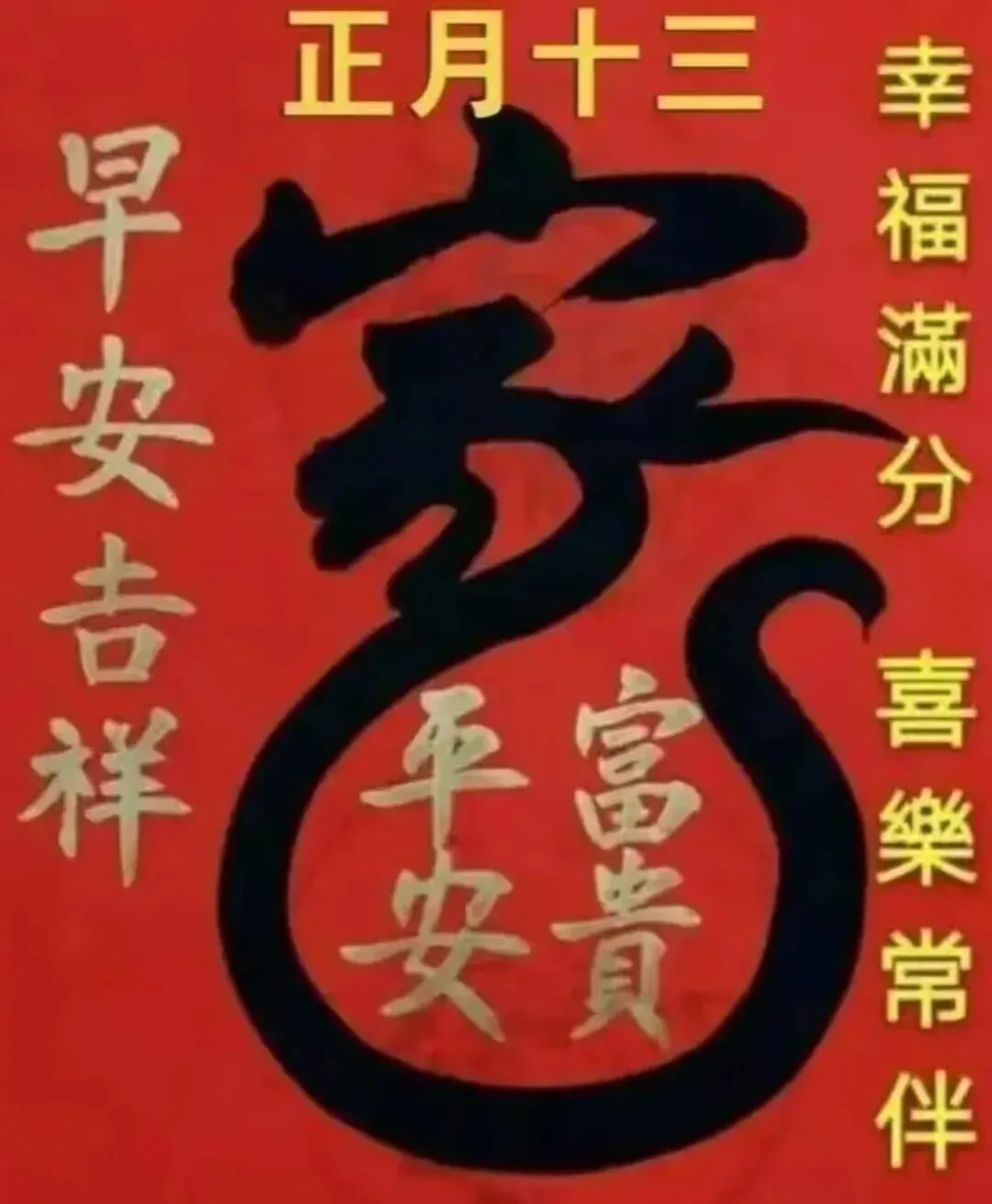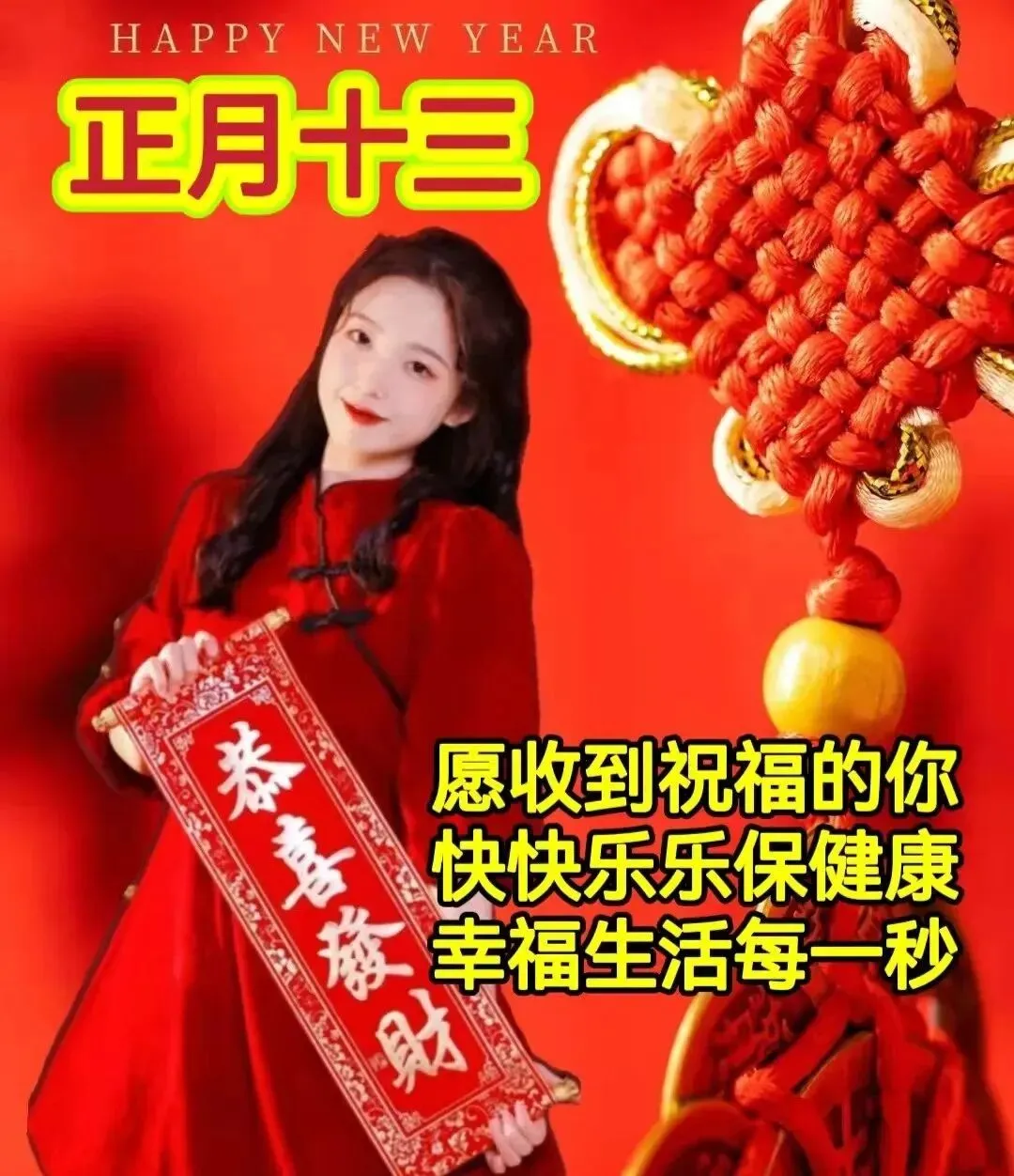 正月十三,年大吉,祝你一如既往,二人同心💕,三口之家👨‍👩‍👧‍👦,四季欢畅😄,五福临门,六六顺意,七喜来财💰,八方鸿运,十分美满🥰!