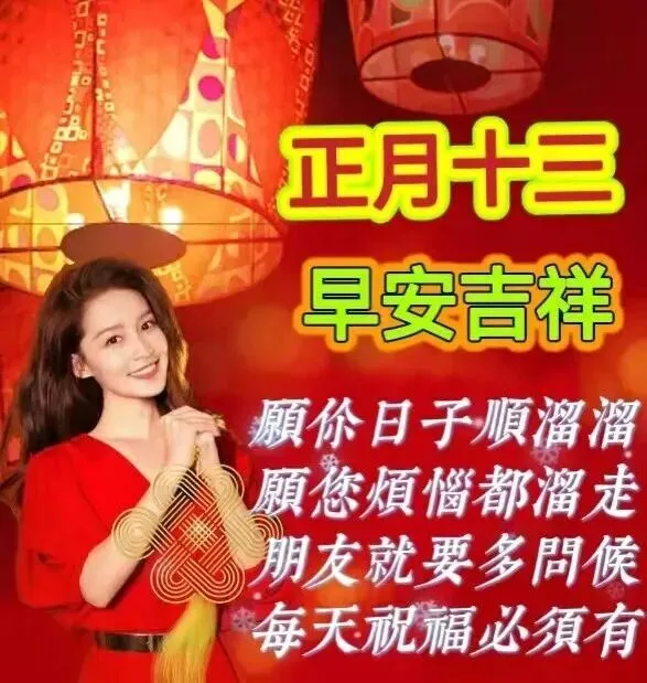 正月十三花灯亮🏮,喜庆佳节好运至🍀。愿你新岁无烦恼😫,平安喜乐岁月长🙏,所念之人在身旁💕,快乐常伴,万事皆顺意🙌!