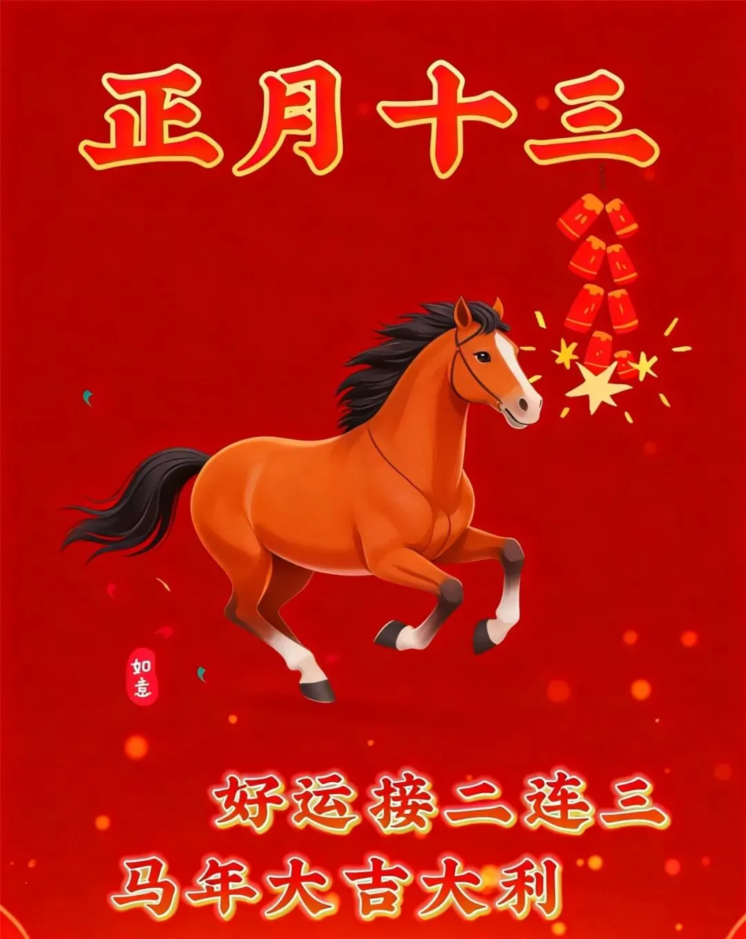 正月十三,愿新的一年:好运接二连三!春风得意马蹄疾,马年好运不停息,马年大吉大利,2026万事如意!