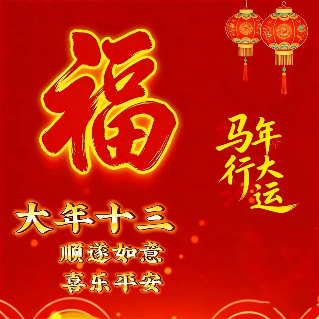 大年十三来到,欢欢喜喜迎元宵,送上今日祝福:农历正月十三,好运接二连三。愿你天天好运到,日日福星照,幸福藏心头,万事不用愁。2026好运接二连三,财源滚滚而来!