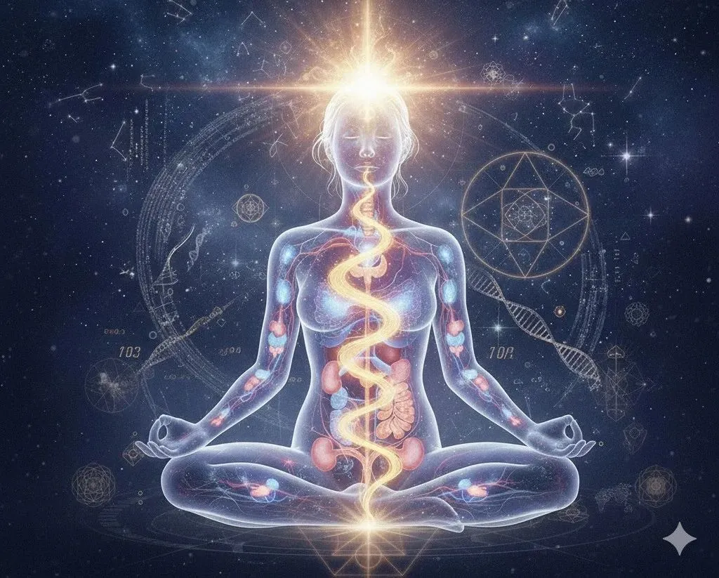 在 Yogi Bhajan 创立的 Humanology(人类学) 课程中,他详细讲解了人体不同穴位和能量中心(Chakras)的关系。他强调,真正的平衡不在于追求超自然的幻象,而在于将坚实、强大的脐轮能量提升,经由横膈膜,进入慈悲的心轮。
