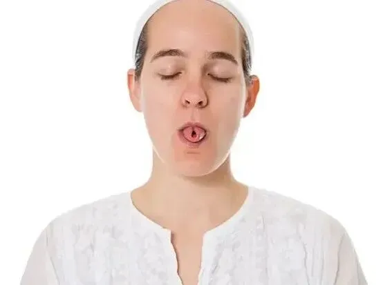注:如果你生理上无法卷舌,就只要把舌头伸出嘴唇外,并在伸长的舌头上吸气。
