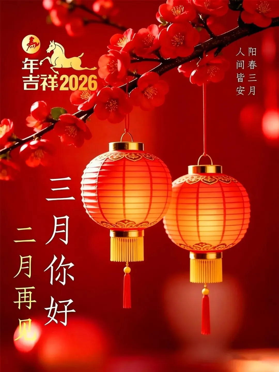 3月1日-正月十三漂亮图片祝福语,愿新的一年:好运接二连三!马年大吉大利,2026万事如意!