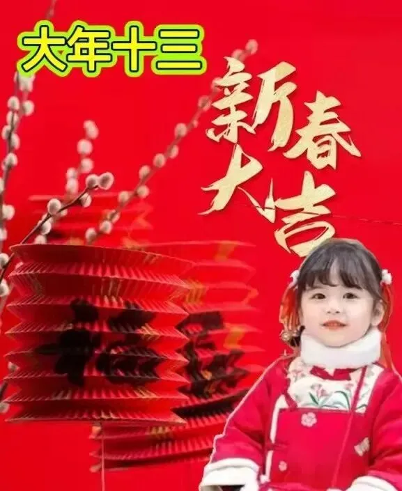 🌈天增岁月人增寿,🌷春满乾坤福满门;💕一家和气又喜气,🌹美满幸福和团圆。🌺今天是大年十三,朋友,🌞祝你和家人新年快乐,🍎幸福美满!🌺