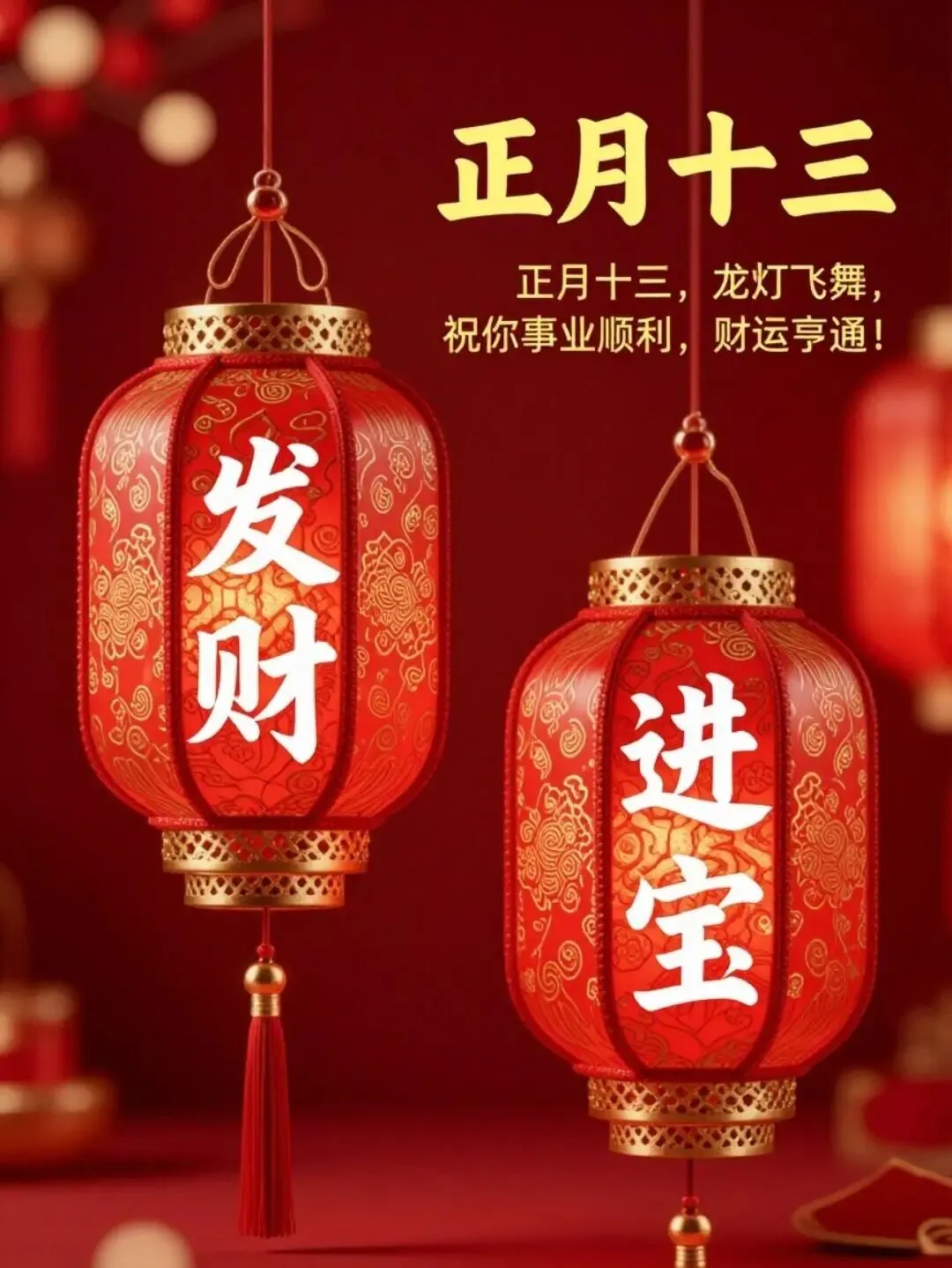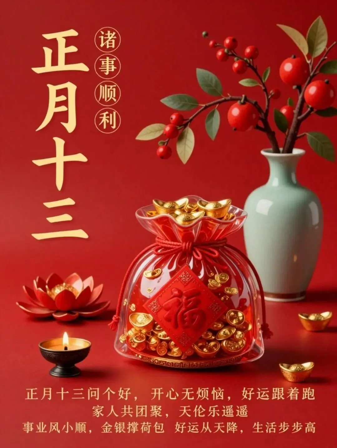 🏮正月十三:祝你平安喜乐,万事顺遂,财源广进福无边,前途广阔艳阳天,鸿运当头,大吉大利🍊