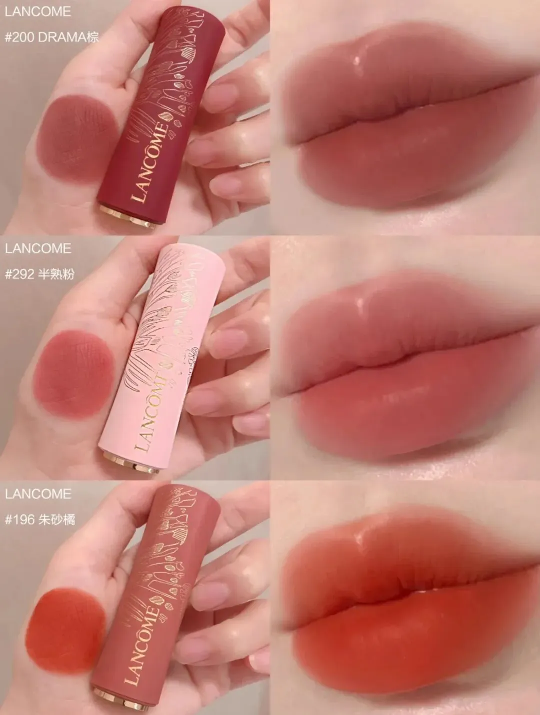 上唇一瞬间,你就会爱上这种柔雾般的质地。顺滑显色,贴合唇纹,持久不干。