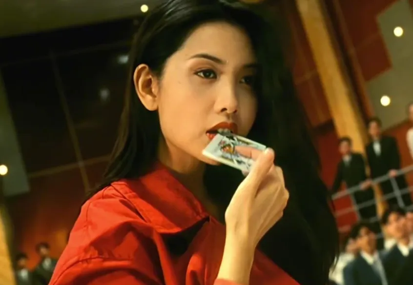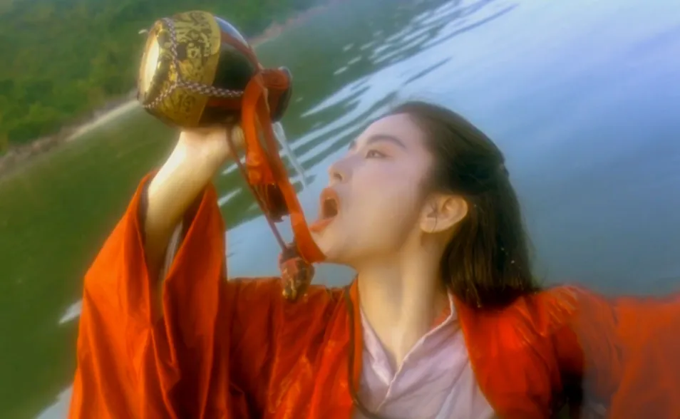 林青霞这张脸真是男女通吃。《笑傲江湖之东方不败》里,红衣饮酒的画面,成为了影史经典。多少人模仿这个镜头都无法超越,她既有女性的柔美,又有男性的英气,这种独特的气质,让她在90年代的港片里独树一帜。