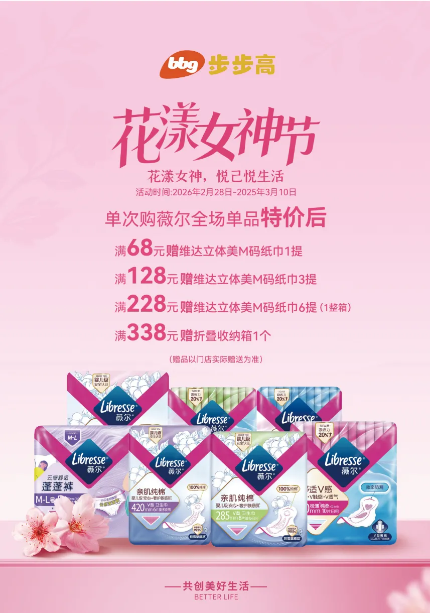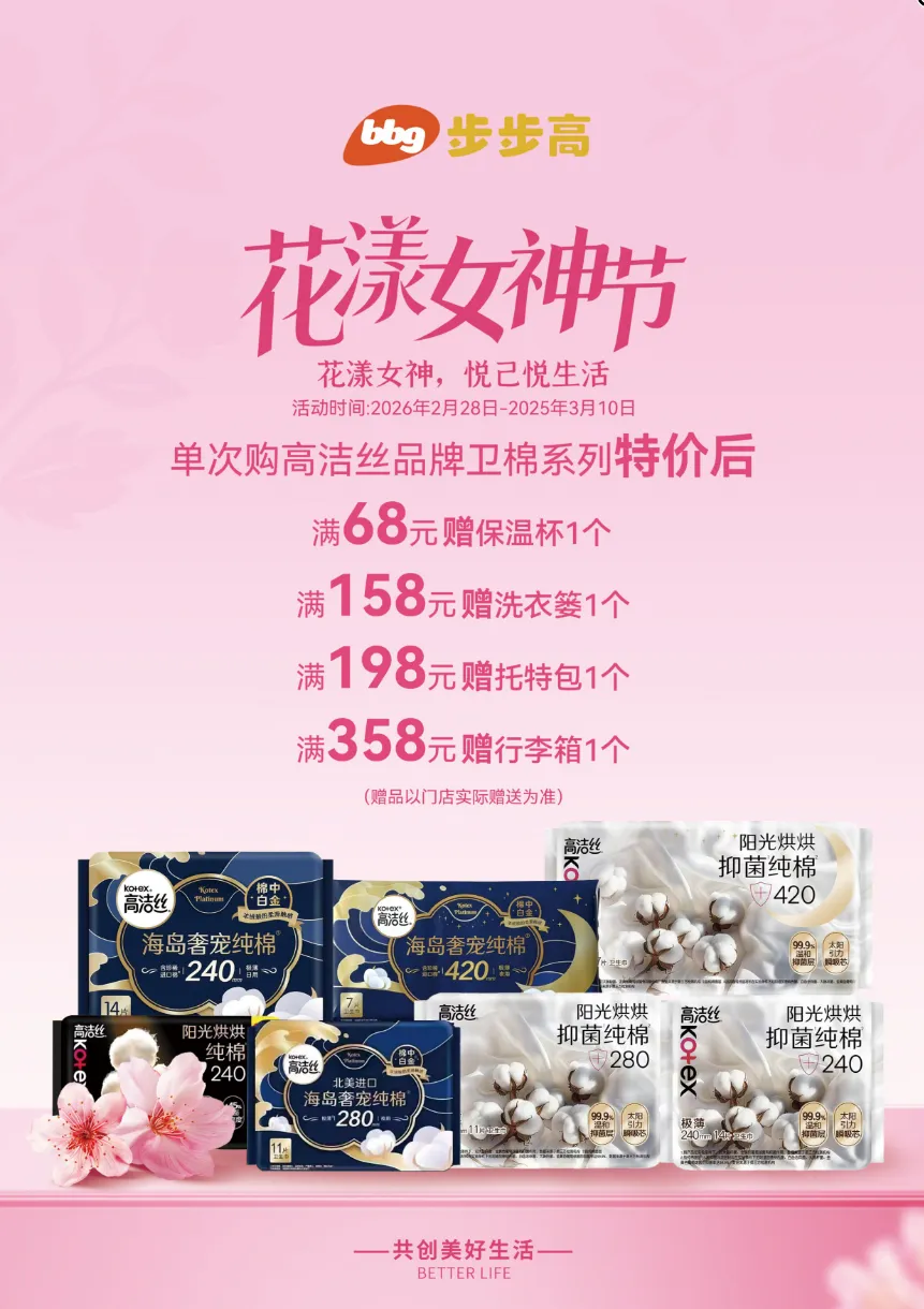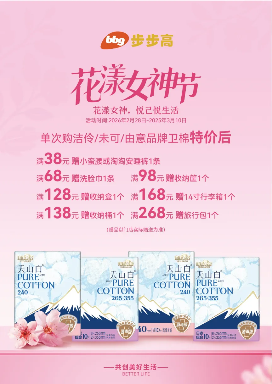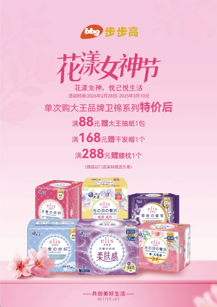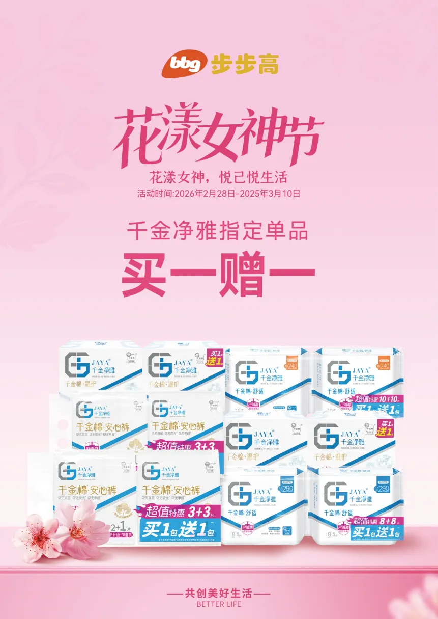 每一个月的特殊时刻,都值得最温柔的呵护。我们深知,自在从容的前提是‘无拘无束’。步步高超市精选亲肤、透气、零感产品,旨在为妳卸下负担,轻盈自在地享受每一刻的舒心与惬意。