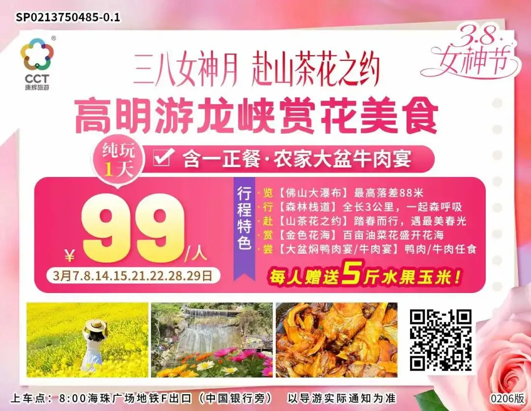 3·8女神节 绽放“她”力量!一程春色花作伴,指定线路女性报名享优惠价送丝巾!
