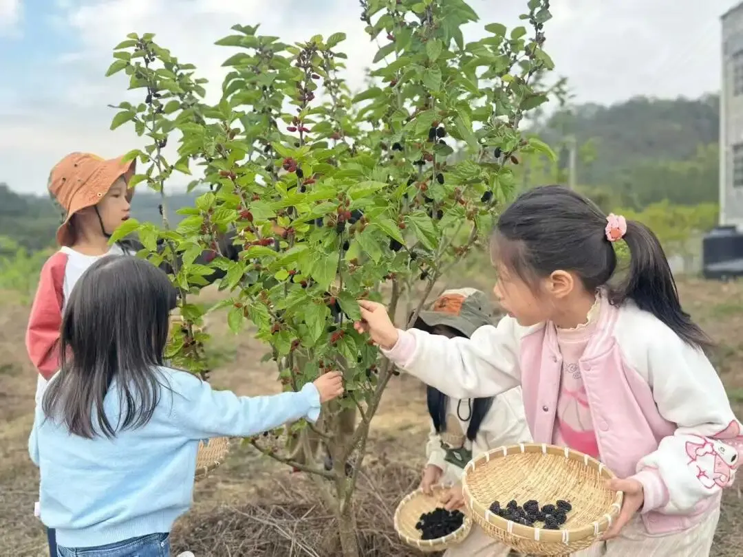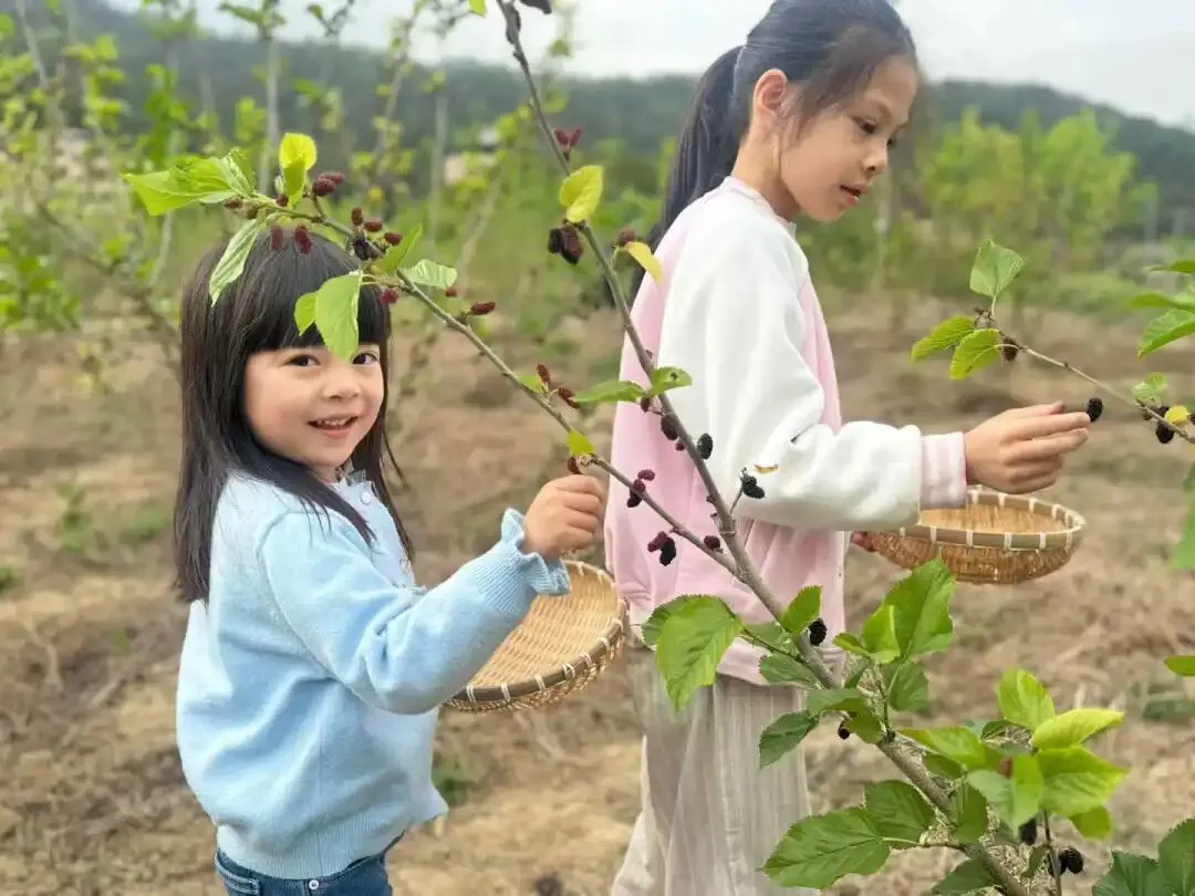 采花惊曙鸟,摘叶喂春蚕,春天正是桑叶疯长,蚕宝宝大吃桑叶快快长大,吐丝结茧的季节。孩子们穿梭桑树之间,寻找着最嫩、最绿的桑叶,熟的桑梓很好吃哦!