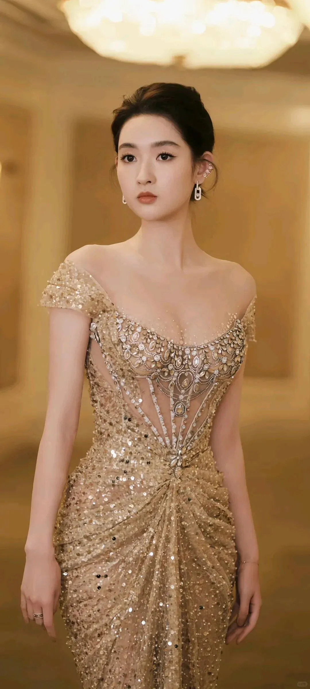 她的腰肢纤细,臀部丰满,胸部挺拔,整个人呈现出一种健康的S型曲线。这种身材不仅符合东方审美,也符合国际时尚界的标准。在红毯上,她总是能够凭借出色的身材成为焦点,无论是性感的深V礼服还是优雅的长裙,她都能穿出属于自己的风格。