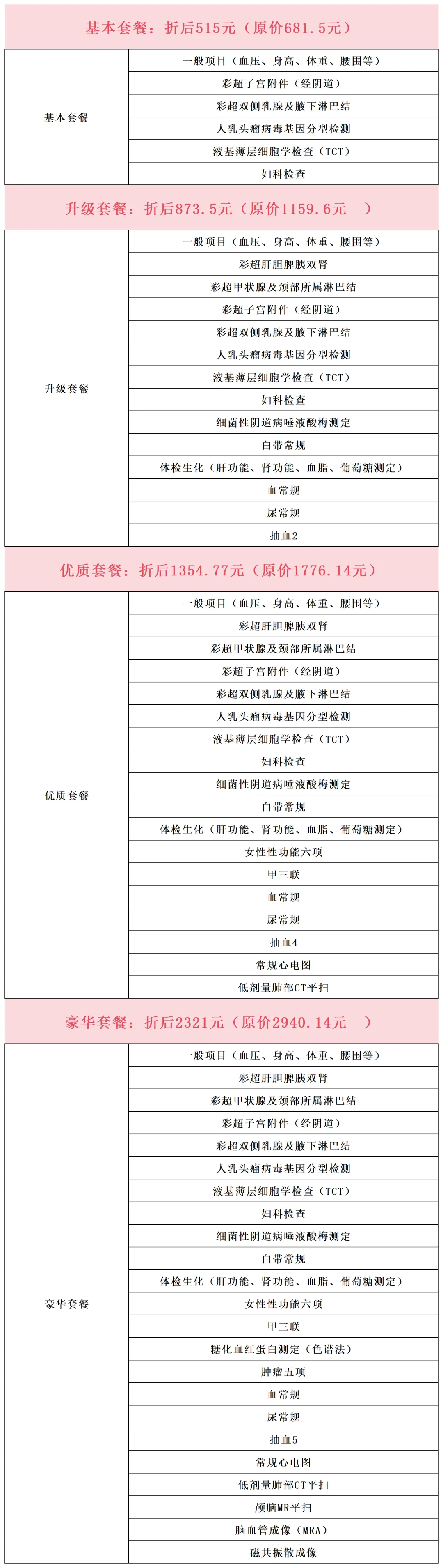 女性专属体检7.5折套餐