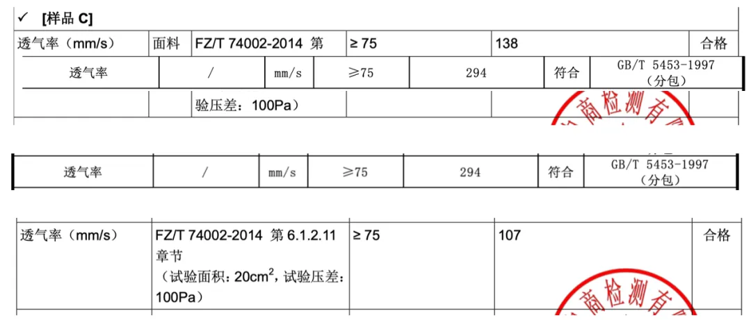 实测下来透气率全部超过 75 mm/s,大大高于国家标准。就算进行中高强度运动,也不用担心捂出一股子酸汗味了~