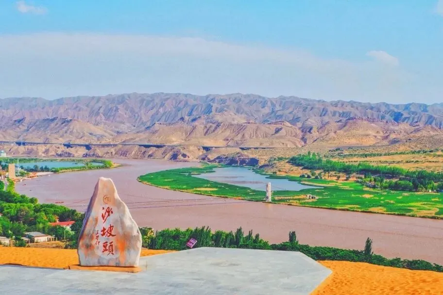 浩瀚无垠的腾格里大沙漠、蕴灵孕秀的黄河、横亘南岸的香 山以及滴翠流红的河湾园林在沙坡头交汇,谱写了一曲大自然瑰丽的交响曲,形成了沙坡头独特的 S 型地理风貌,极似中国阴阳太极图。