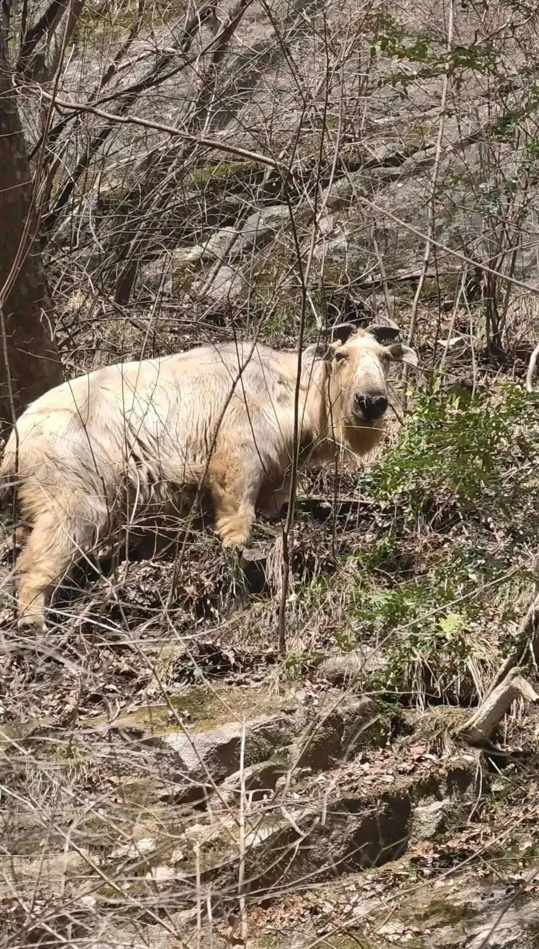 更惊喜的是,有游客偶遇了埋头干饭的羚牛 —— 这位国家一级保护动物,在春日的山林里自在觅食,憨态可掬的模样,让太白山的春日多了几分灵动与野趣。