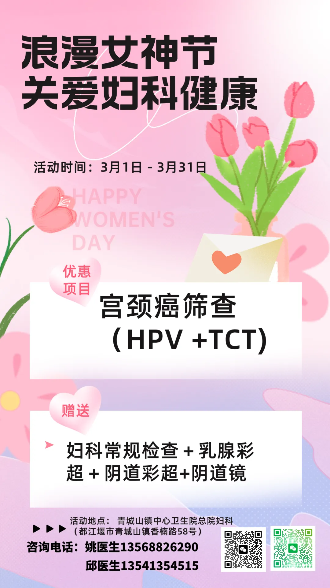 春风送暖,芳华正好。在2026年“三八”国际妇女节来临之际,都江堰市青城山镇中心卫生院(都江堰市第五人民医院) 特别策划了三大健康惠民专场活动,用专业与关爱,为女性朋友送上一份贴心的健康守护。