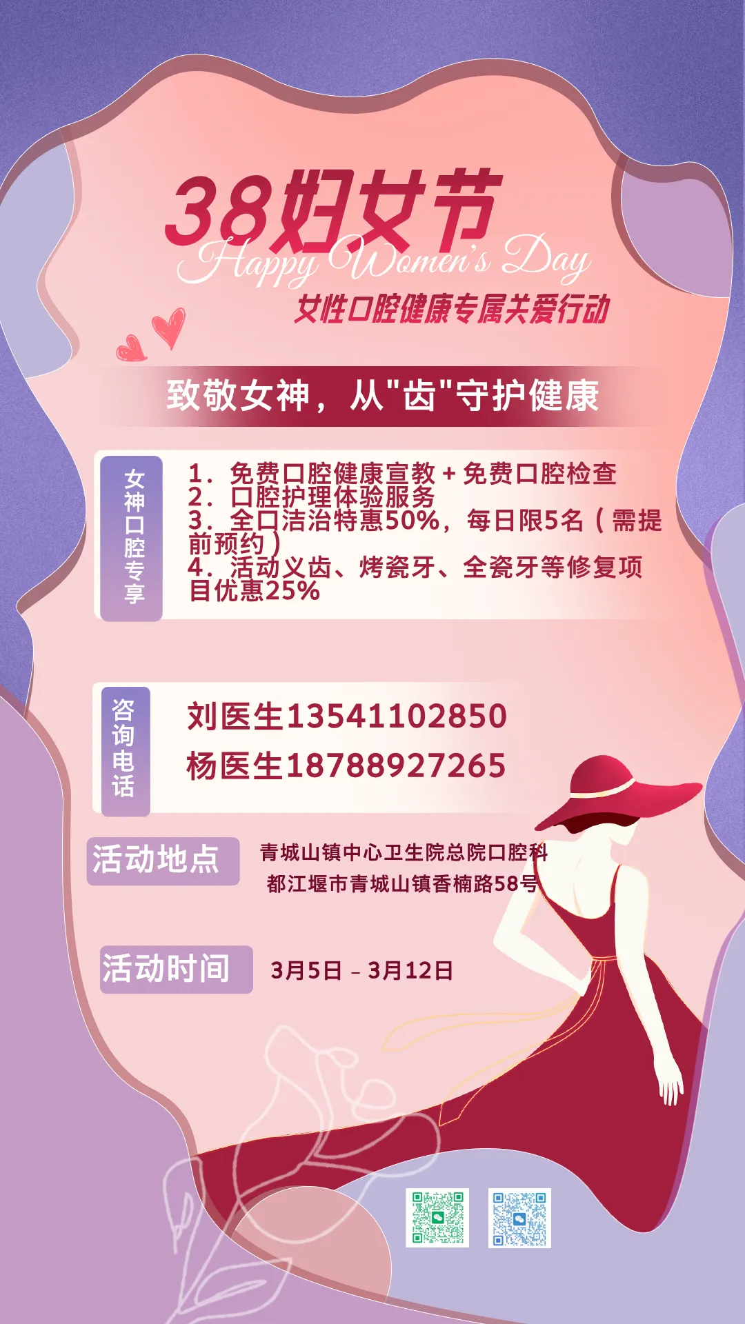 这个三月,让我们一起拥抱健康,绽放美丽。都江堰市青城山镇中心卫生院全体医护人员,祝您女神节快乐,健康常伴,笑靥如花!