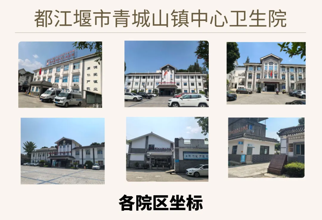 ① 青城山镇中心卫生院总院中医科(青城山镇香楠路58号)