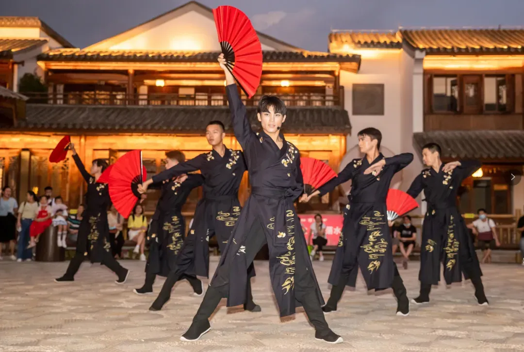 晚间有福州首个大型实景演艺秀《寻梦·千年闽越》,晚上7点开始,时长为45分钟(报名价格已含此费用)