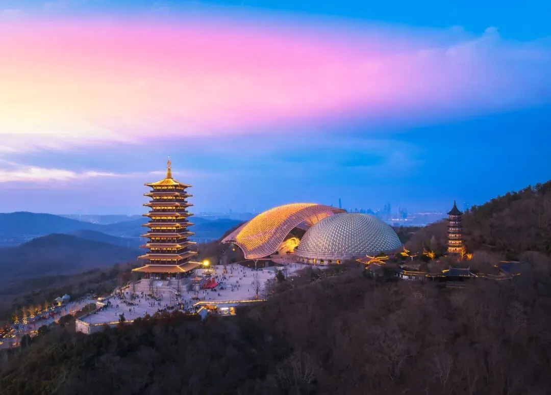 下午游览【牛首山】(门票160元已含,游览时间约2.5小时):与秦淮河、玄武湖、紫金山并称“金陵四大名胜”,素有“春游牛首”之美誉。这里天工造化,景色绝佳,牛首烟岚,恍若仙境,历来是休闲旅游的胜地,更是佛教牛头禅宗的开教处与发祥地。游览【佛顶宫】牛首山遗址公园内最大看点要数佛顶宫了。世界唯一一颗佛顶舍利:就在牛首山佛顶宫!佛顶宫呈半圆状,整体造型是以巨型莲花托起佛顶发髻的摩尼穹顶,直径超过200米,非常辉煌壮观。在整个穹顶的最底层,整个遗址公园最为神圣的宫殿里供奉着释迦牟尼佛顶骨舍利。供奉佛祖顶骨舍利的仿制圣塔有鎏金、水晶、琉璃、宝石等佛教“七宝”镶嵌,集青铜、鎏金、掐丝珐琅、雕塑、錾刻等数十种传统工艺于一身,再辅以激光投影,堪称精美绝伦)。【佛顶塔】是佛顶圣境的标志性建筑之一,建筑高度约88米,建筑面积5065平方米,九级四面,与明代弘觉寺塔相为呼应,重现历史上牛首山“双塔”的恢弘格局。适合返程(导游安排时间),结束愉快的旅行!