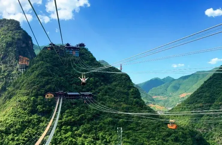 滑索横跨峰峦……