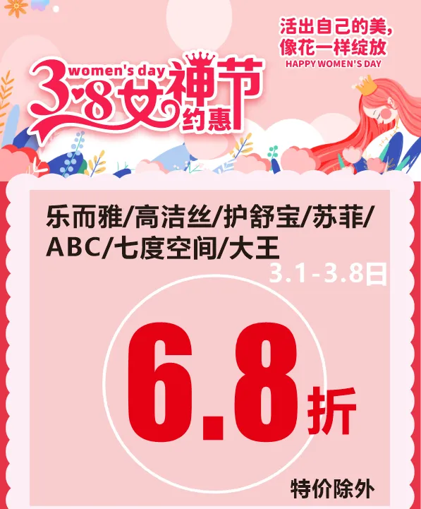 当前位置:首页>美女资讯>【新万悦超市龙江店】欢乐闹元宵·约惠女神节!全场汤圆水饺6.9折!卫生巾低至5折!