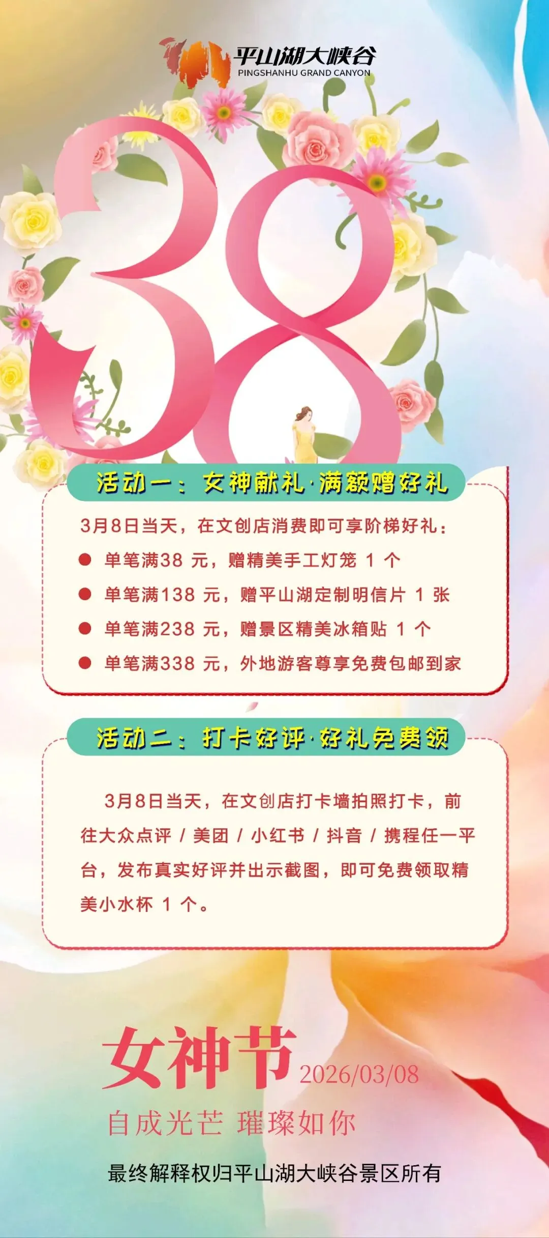 三八女神节|平山湖大峡谷宠粉到底!五大专属福利,赴一场春日美好之约!