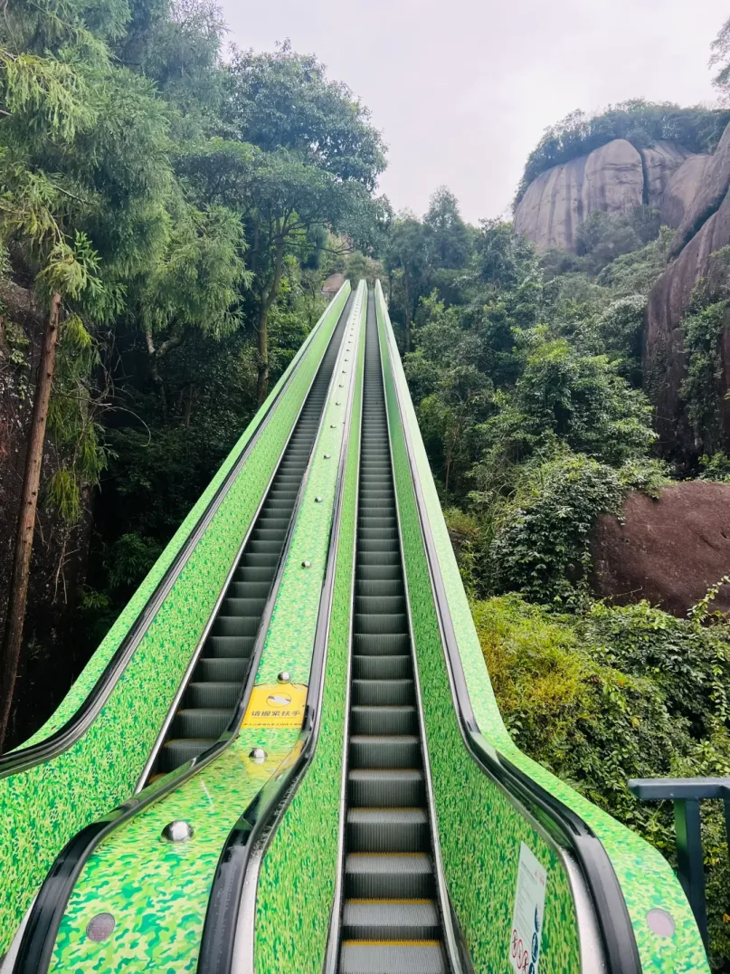 踏上电梯,随着扶梯缓缓上升,两旁的美景便如画卷般徐徐展开。无需费力攀登,就能一路饱览这令人心旷神怡的自然风光,实现2分钟“无痛”登山。