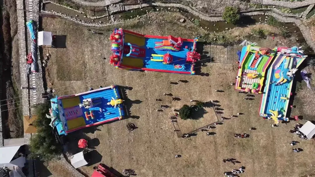漫步百亩油菜花海,金黄花浪随风起伏,与青山绿水、古村建筑交相辉映,沉浸式感受乡村的生机与美好;打卡鱼鳞坝、鹅卵石亲水步道,踩水嬉戏,感受溪水的清凉与温柔;或是在花田旁的休憩区围炉煮茶,吹着春风、闻着花香,享受慢下来的惬意时光。这里还有趣味互动项目,偶尔能在花海间“寻瓷”探秘,或是体验套鸭子、抓小猪等田园游戏,重拾童年乐趣,让女神们在自然中尽情释放活力