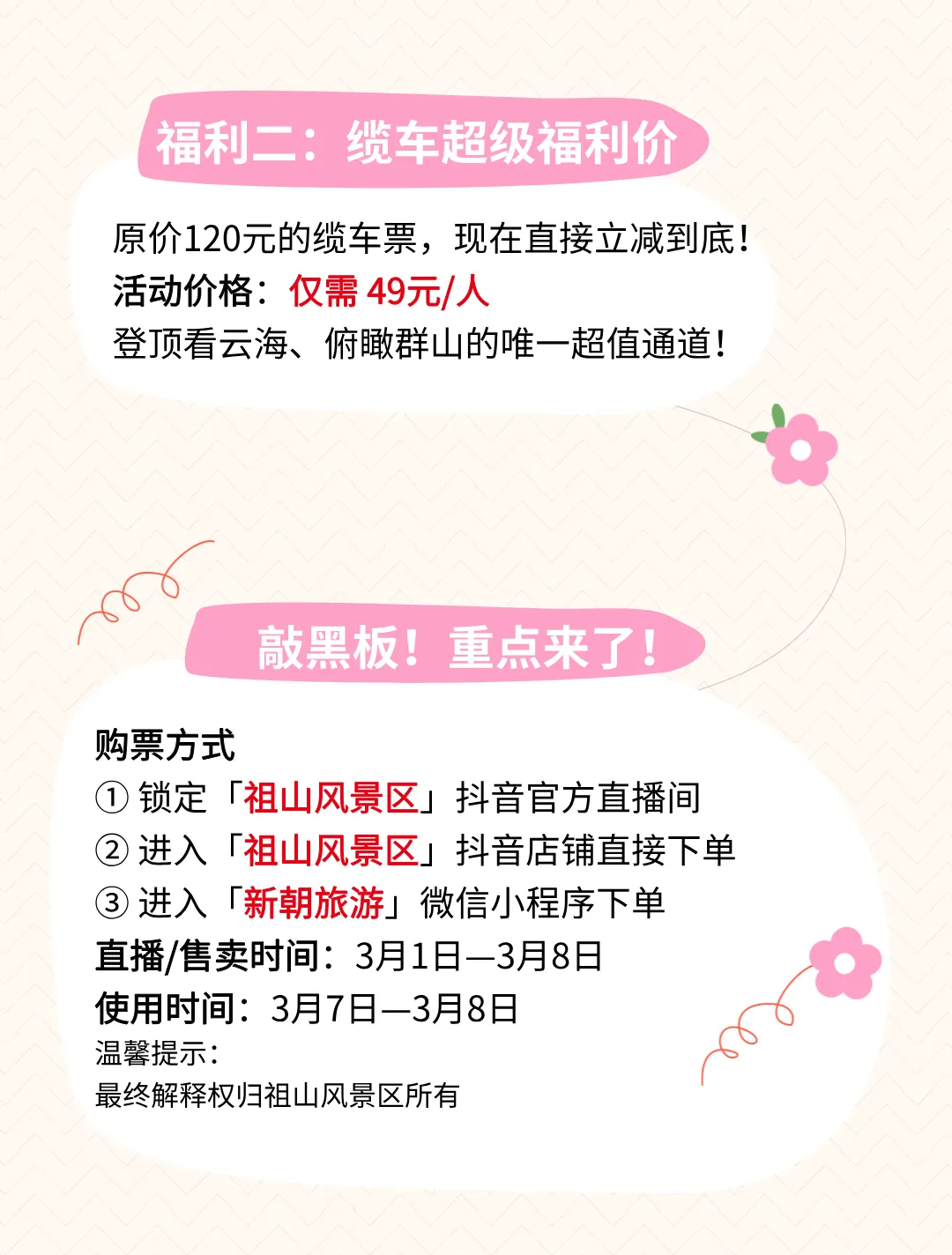当前位置:首页>美女资讯>免票!免票!女神节祖山免门票!缆车49元!