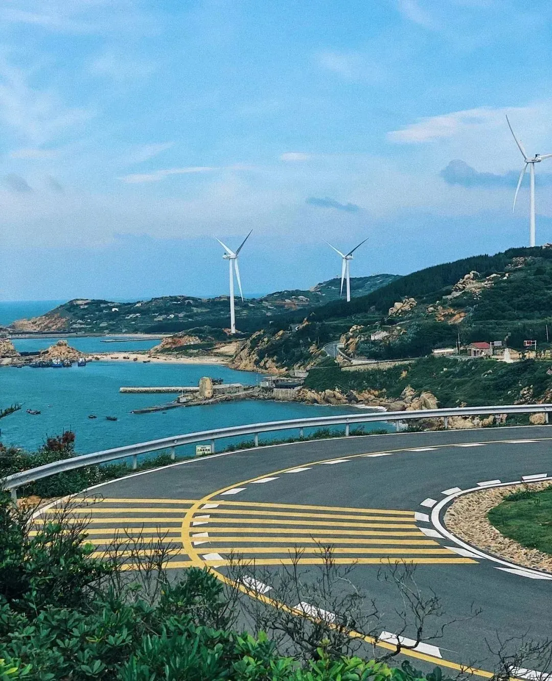 蓝天、碧海、风车