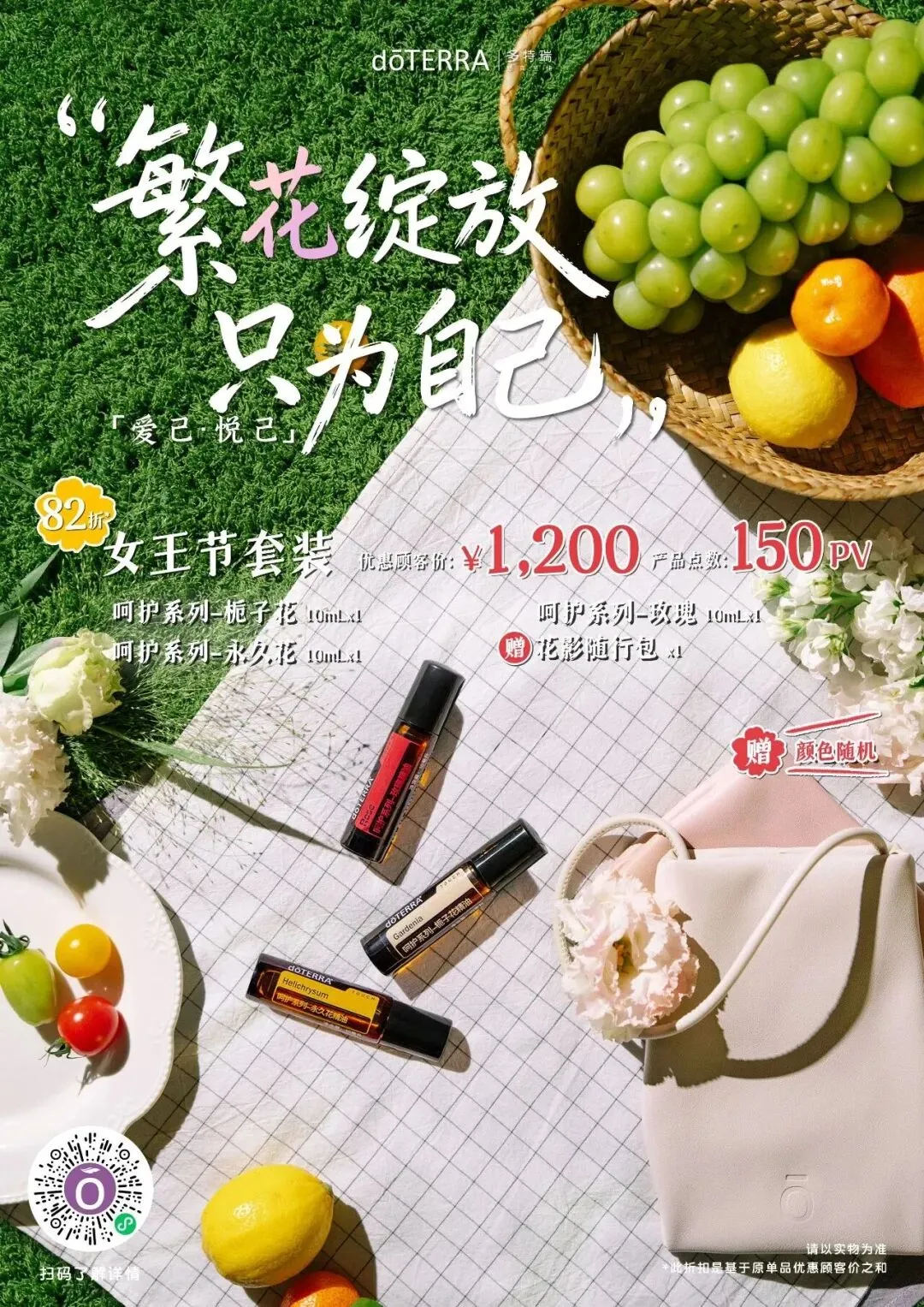 精选3支珍贵花类呵护精油,开赠送精美实用花影随行包(颜色随机)为春日增添不一样的色彩