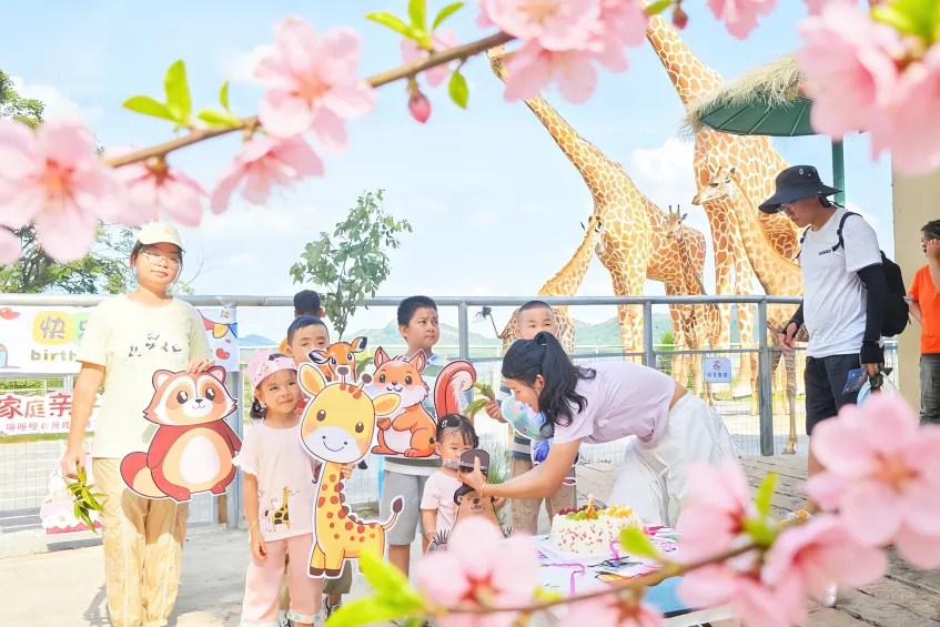 春日限定惊喜!景区特邀明星萌宠长颈鹿举办温馨生日会,现场与长颈鹿亲密互动,沉浸式感受萌宠带来的温暖与欢乐,解锁白鹤湖女神季限定温馨体验,治愈感拉满!(活动期间每周六下午三点准时举办)