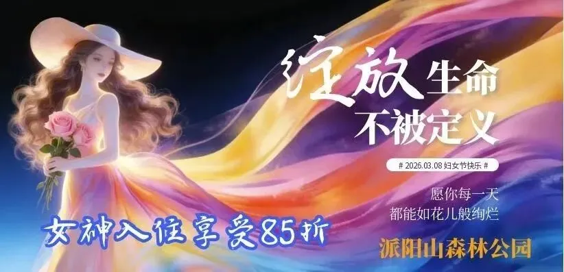 1. 女神特惠:3月8日当天,女性游客入园享门票免费;同行男士关注公众号可免门票;打卡植树区,赠送派阳山特色红桄榔粉甜品1份