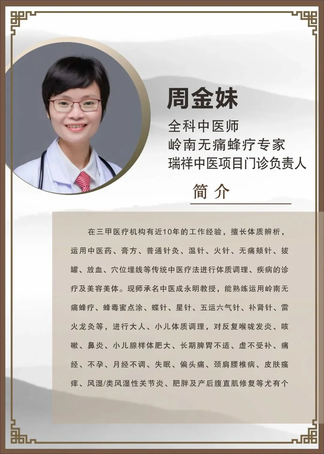 “岭南无痛蜂疗”是由北京中医药大学特聘教授、广东省中医院教授一一成永明教授所独创,主要是通过蜂针对穴位的点刺,发挥蜂毒和穴位的双重治疗作用,达到消炎镇痛、活血化瘀及提高免疫的功效。适用人群:成人及儿童身体虚弱、反复感冒发热、经常咽喉发炎、咳嗽痰多、久咳不愈,反复气管炎、肺炎、多动症、遗尿、便秘、腹泻(特别是婴幼儿腹泻)等病症;前列腺炎、月经不调、痛经、不孕不育、乳腺增生;类风湿性关节炎、强直性脊柱炎、颈肩腰腿痛等各种痛症效果显著。蜂疗配合膏方、补肾针、蝶针、蜡疗等疗效更佳。